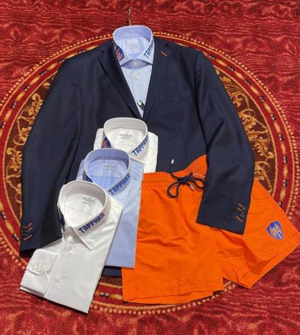 Sportliche Leidenschaft in eleganter Form – wir verwandeln die Farben und Symbole Ihres Lieblingsvereins in maßgeschneiderte Anzüge, Hemden und Accessoires.